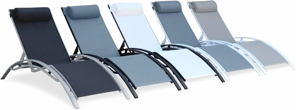 Alice’s Garden Louisa Ligstoelen – Aluminium/Textileen – 1,67 M – Antraciet/Grijs
