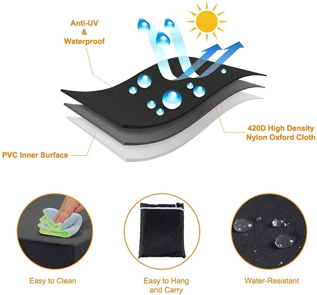 Hoogwaardige kwaliteit De hoes is geproduceerd uit een hoogwaardig recyclebaar polyethyleen weefsel en voorzien van een waterproof PU-coating zodat uw tuinmeubilair maximaal beschermd is. De tuinmeubel beschermhoezen worden zodanig afgewerkt op de naden dat deze ook volledig waterdicht zijn. Een hoes van polyester kan water doorlaten, deze hoes absoluut nooit.