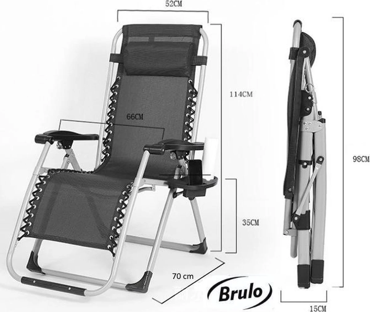Brulo – Ligstoel Tuin – Ligstoelen – Strandstoel Opvouwbaar – Tuinstoel – Incl Tafel En Hoofdkussen