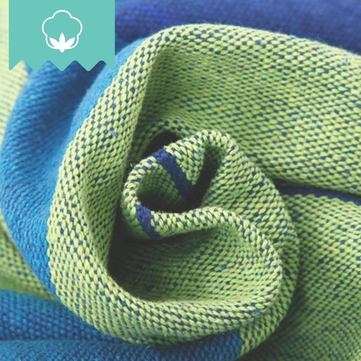 Materiaal: Opbergtas en hangmat: Katoen/canvas mix Bevestigingstouwen: Nylon