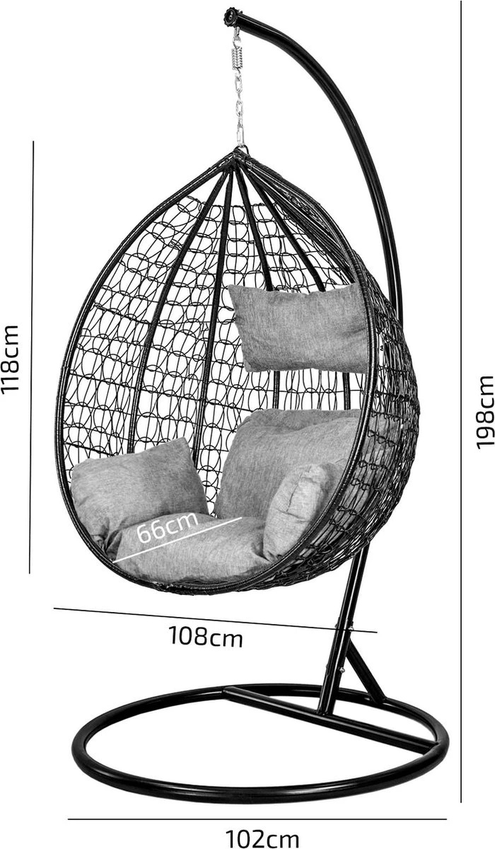 Hangstoel – Ei Stoel – Met Frame – Zwart Beige – Tot 125 Kg