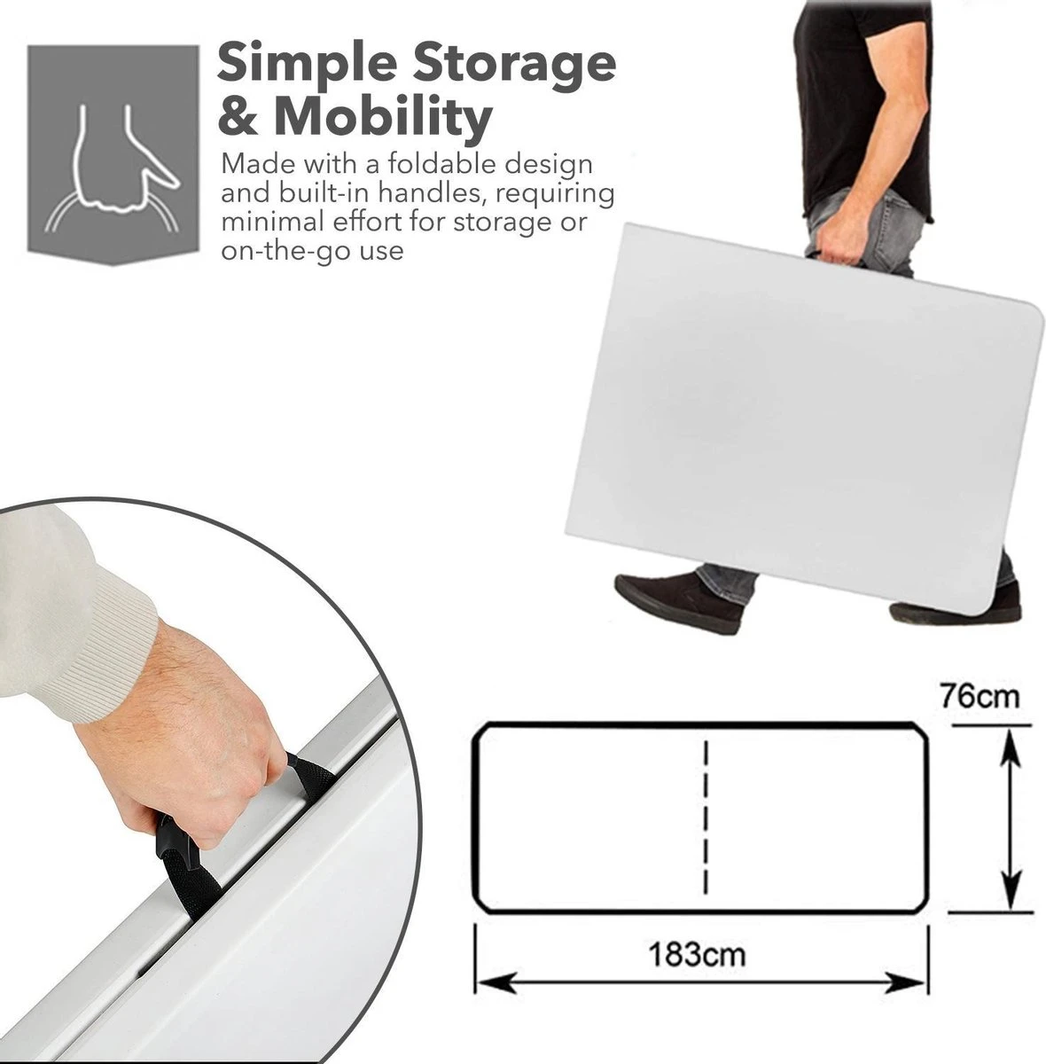 MaxxGarden Vouwtafel – Opvouwbare Kampeer Tafel – Tuin – Camping – Binnen – Weersbestendig – 180 X 74 X 74cm- Wit