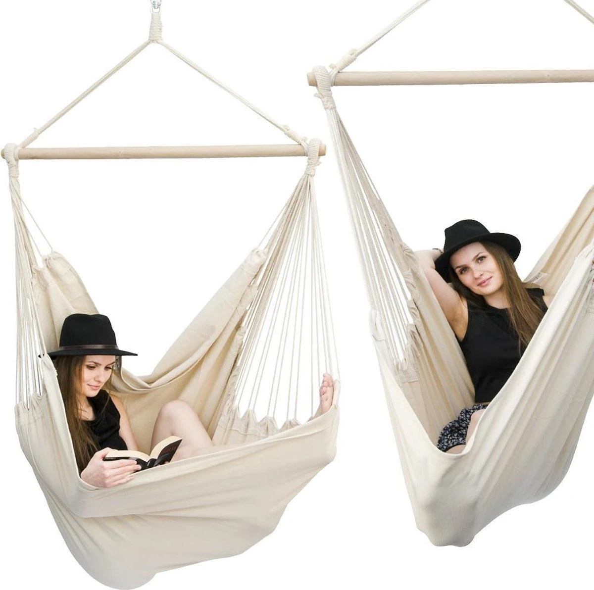 XXL 2 Persoons Hangstoel 185×130 – Zit Hangmat Met Spreidstok Tot 150 Kg – Binnen En Buiten